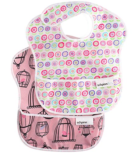 -. Feature : machine washable, waterproof, , dries quickly, stain resistant, odor resistant / Excellent Bibs. They cover a large area, the velcro lasts forever (unlike others we've used), the pouch at the bottom is great, and saves many a spill. / They wash up easily and fold up really small for easy packing. They're soft, light, and totally water proof. / schpinn&co brand / Lead free, PVC free, BPA free, Phthalates free, and Vinyl free