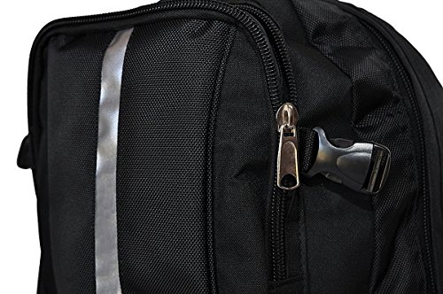 GREAT FEATURES: Reflective silver stripe for better visibility at dusk. 5 zip pockets to organize your gear. Comfortable waist strap really helps when you are loaded down. Water resistant!