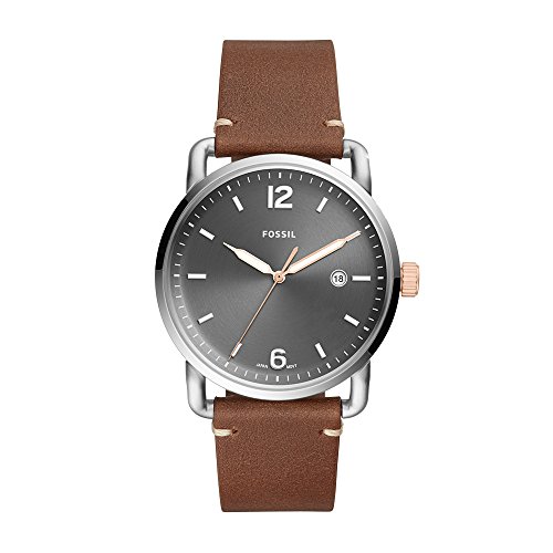Brand, Seller, or Collection Name:Fossil Model number:FS5417 Part Number:FS5417 Item Shape:Round Dial window material type:Mineral Display Type:Analog Clasp:Buckle Metal stamp:no-metal-stamp (Fashion only) Case material:Stainless steel Case diameter:42 millimeters Case Thickness:9.3 millimeters Band Material:leather calfskin Band length:Men's Standard Band width:21.1 millimeters Band Color:Brown Dial color:Grey Bezel material:Stainless steel Bezel function:Stationary Calendar:Date Item weight:2.08 Ounces Movement:Quartz Water resistant depth:165 Feet