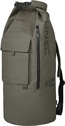 -. Binding : Personal Computers -. Brand : Musterbrand -. Color : Olive -. Department : unisex-adult -. Feature : Bag can be easily accessed through top opening and side zip / Heavy duty bag with robust tarpoulin fabric / Splash-proof materials and seams / Up to 60 liters capacity / High Quality Merchandise / Gaming fashion for adult men -. Model : MBHA006 -. ProductGroup : PC Accessory -. ProductTypeName : CARRYING_CASE_OR_BAG -. Title : Musterbrand HALO - UNSC Top Loader