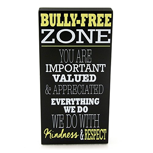 - Features yellow and white letters with inspirational “Bully-Free Zone” messaging