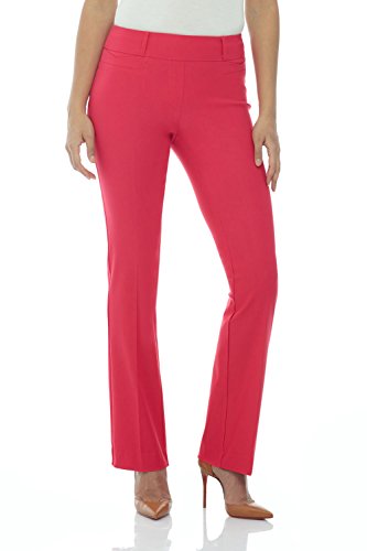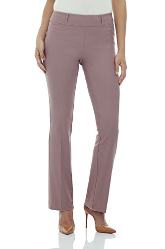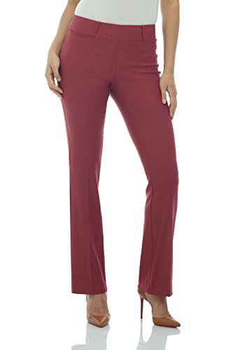 These Rekucci bootcut comfort pants are made of our flattering Nylon,Rayon and Spandex blend fabric. The bootcut leg shape slims the hip and elongates the leg. Our soft comfort waist band is the perfect support for a slimming effect and a smooth silhouette. Enjoy wearing Rekucci!! IMPORTANT* MACHINE WASH IN COLD WATER AND HANG TO DRY TO AVOID SHRINKAGE. REGULAR length 32" Petite 29" Solid Colors: 74% Rayon 22% Nylon 4% Spandex. -Melange Colors: (Charcoal, Dark Charcoal, Indigo, Brown Mix) 48% Polyester 27% Rayon 21%Nylon 4% Spandex