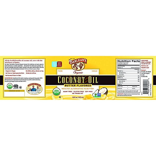 -. Binding : Health and Beauty -. Brand : Barlean's Organic Oils -. EAN : 0747565608714 -. Feature : 2 Pack / Our dairy free Butter Flavored Organic Coconut Oil offers all the healthy benefits of organic coconut oil, with the rich taste of butter. / Great on toast, popcorn, baked potatoes or cooked vegetables. You can also substitute it 1:1 for butter in baking, cooking and frying. -. IsAdultProduct : 0 -. Label : Barlean'S Organic Oils -. LegalDisclaimer : NOTE: Actual product packaging may sometimes differ from image shown due to packaging updates & improvements by the manufacturer. We DO NOT P.R.Ice match. Tracking information/number provided upon request. We are a drop shipping company and items may come directly from the manufacturer's. We do not ship to PO BOXES. -. Manufacturer : Barlean'S Organic Oils -. ProductGroup : Health and Beauty -. ProductTypeName : HEALTH_PERSONAL_CARE -. Publisher : Barlean'S Organic Oils -. Size : 2 Pack -. Studio : Barlean'S Organic Oils -. Title : Butter Flavored Coconut Oil 16 oz (Pack of 2) -. UPC : 747565608714