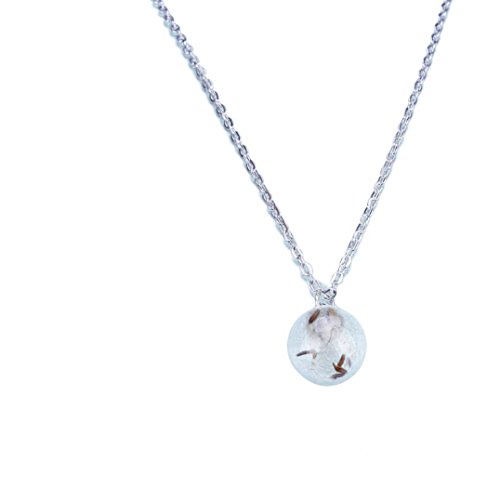 -. Title : Susenstone Real Natural Flowers Glass Pendant Silver Necklace