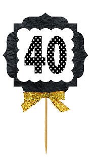 40th Birthday / Anniversary Gold Ribbon Hand Crafted Novelty Cupcake Decoration Toppers / Picks -12ct