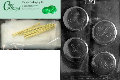 Cybrtrayd Mdk25G-S091 Hockey Puck Sports Chocolate Candy Mold, Includes 25 Cello Bags and 25 Gold Twist Ties