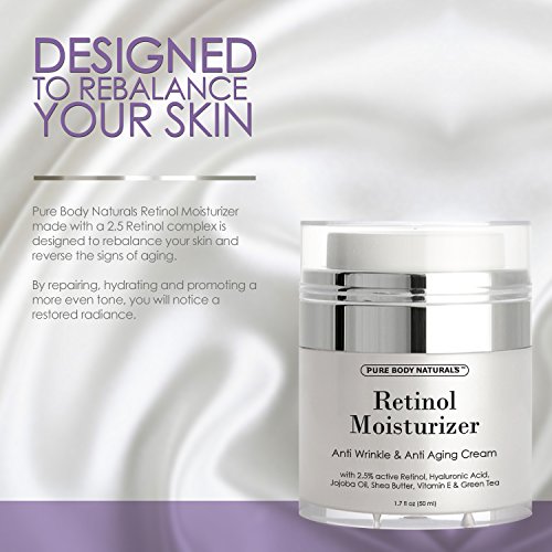 -. Binding : Health and Beauty -. Brand : Pure Body Naturals -. EAN : 0646437319850 -. Feature : WITH ACTIVE RETINOL - This powerful cream may help diminish the signs of aging with active retinol while leaving you skin soft and smooth. / 71% ORGANIC - contains natural ingredients such as Organic Aloe, Green Tea, Jojoba oil, Shea Butter for healthy skin. / SUPER MOISTURIZER - Will moisturize and hydrate your skin leaving a radiant glow. / Facial Products with Natural and Organic Ingredients: No one cares for your skin more than Pure Body Naturals! As with our entire line of top skin care products, this Retinol Moisturizer utilizes a healthy dose of natural and organic ingredients to keep your complexion looking better than ever. / Great Results or Your Money Back: Is there anything worse than a skincare product that just doesn't work? We're confident in our Retinol Cream will bring you some great results but if it doesn't, you can return your product with our money-back guarantee! With absolutely nothing to lose, order today risk-free and start your journey toward the amazingly beautiful complexion you've always wanted. -. IsAdultProduct : 0 -. Label : Pure Body Naturals -. Manufacturer : Pure Body Naturals -. Model : Retinol Moisturizer Cream -. MPN : Retinol Moisturizer Cream -. PackageQuantity : 1 -. PartNumber : Retinol Moisturizer Cream -. ProductGroup : Beauty -. ProductTypeName : BEAUTY -. Publisher : Pure Body Naturals -. Size : 50 ML -. Studio : Pure Body Naturals -. Title : Retinol Cream Moisturizer for Face with active retinol, hyaluronic acid, jojoba oil, shea butter and green tea. Best night and day moisturizing cream 1.7 fl. oz. -. UPC : 646437319850