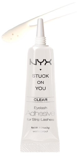 -. Binding : Misc. -. Brand : NYX -. EAN : 0800897813659 -. Feature : When you are about to apply faux eyelashes, glue is imperative! / This bad boy will fuse the falsies to your lash line as if they were your natural lashes! / Both are waterproof formulas and dries transparently quicker than other leading brands. / No need to wait for longer and fuller lashes, you'll be doll eyed in no time! -. IsAdultProduct : 0 -. Model : ELG02 -. MPN : B007OQGEJE -. PackageQuantity : 1 -. PartNumber : B007OQGEJE -. ProductGroup : Beauty -. ProductTypeName : BEAUTY -. Title : NYX Eyelash Adhesive " Stuck on You " Waterproof Clear ELG02 -. UPC : 800897813659