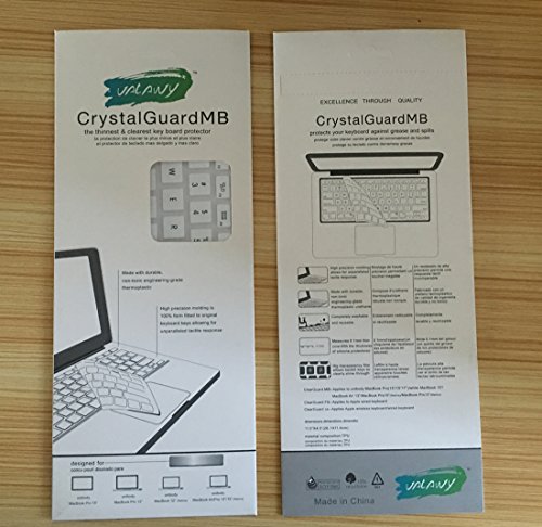 Feature : Perfect fit for the All Latest MacBook Air 11.6 with or w/out Retina Display / Every key is individually molded and specially printed on clear silicone for a long lasting professional look. / Design to provide the full protection for your Macbook keyboard against dust spills, key wear and more. / Extra slim silicone skin, made it easier for typing. The keywords are printed on the keyboard cover / Flexible, washable, easy to apply and remove for cleaning or disinfecting. Manufactured to the Highest Quality Available