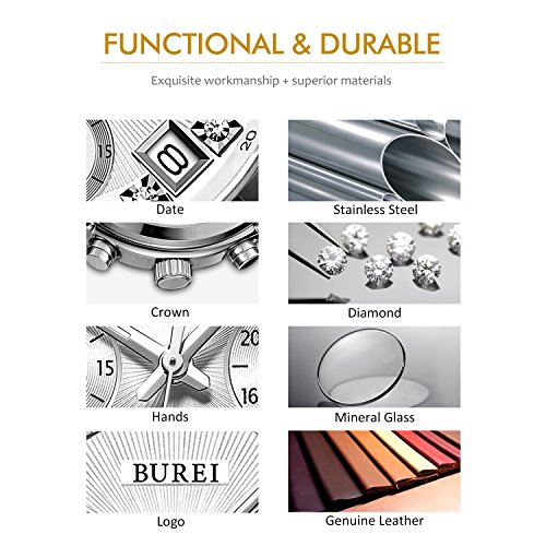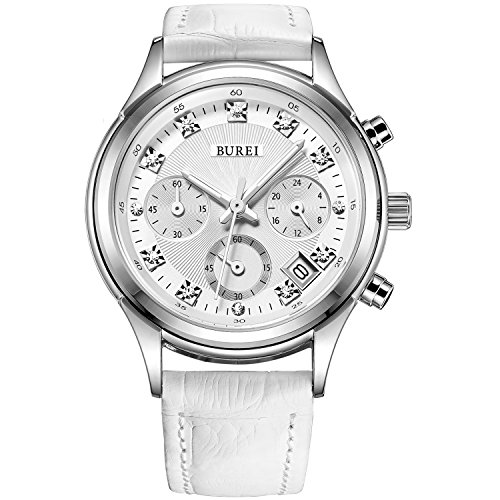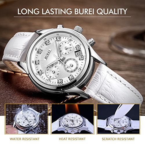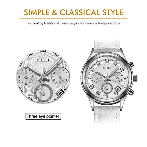 -. Title : (バオショ)BUREI 腕時計 レデイース シンプル おしゃれ 防水 日付 文字盤 クロノグラフ ホワイト 天然皮革バンド