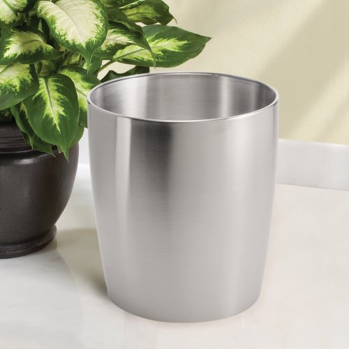 InterDesign Gina Wastebasket Trash Can, Brushed Stainless Steel