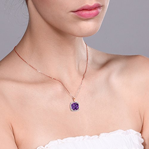 Add a gorgeous and sophisticated glow to any outfit with our gorgeous Amethyst and Diamond pendant. Perfect for dressing up or dressing down this gorgeous pendant is sure to be the center of attention on any ensemble. Featuring a gorgeous Amethyst stone this beautiful item comes with a complimentary 18 inch 10K Rose Gold chain. So that it's ready for gifting and ready to be worn. This item makes a gorgeous gift for Birthdays, anniversaries, weddings, and all other special occasions, and will be an item to cherish for years to come.This beautiful item is brand new and comes with complimentary gift packaging appropriately selected to match the item you purchased. The packaging ranges from dainty foam insert packaging to luxurious leather insert cherry wood boxes. Every order is fully insured regardless of value. This insurance protects you against damage or the loss of your item while in transit. The Shipping and Handling fees include the insurance so there is no need to pay separately for insurance.