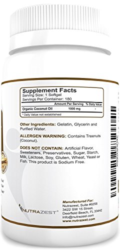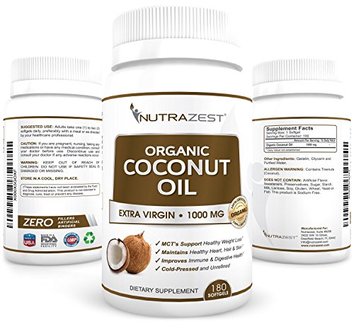 -. Title : Nutrazest Extra Virgin Organic Coconut Oil Capsules - 1000mg with MCTs to Promote Healthy Weight Loss, Boost Digestion, Natural Immunity & Hair, Skin, Nails Health - 100% Cold Pressed 180 Softgels