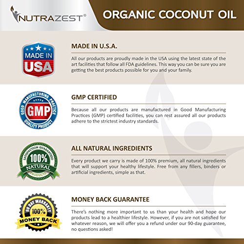 -. Feature : HIGH-STRENGTH ORGANIC COCONUT OIL CAPSULES (1000mg) WITH MCTs - bring to you the best, all-natural & healthy weight loss benefits of Extra Virgin Coconut Oil! Get rid of all those nasty chemical weight loss supplements & embrace the power of MCTs! / IMPROVING IMMUNITY & DIGESTION - All natural Organic Coconut Oil capsules help you build & enhance your natural immunity while improving your energy levels, allowing you to lead a healthy & active lifestyle free of fatigue! It also restores & improves your digestive health - without any side effects at all! / POWERFUL HAIR, SKIN & NAILS BENEFITS - Extra Virgin Organic Coconut Oil is full of natural, essential fatty acids that help you maintain your hair, skin & nails in a perfectly healthy condition! / COLD PRESSED & UNREFINED - We don't believe in stripping natural benefits of Coconut Oil by processing it heavily! What you get from us is the highest grade all organic, cold pressed & unrefined coconut oil formula! / 100% MONEY BACK GUARANTEE - To complement FDA & GMP Approvals, Nutrazest offers an Unconditional 90-Day Money Back Guarantee on all our products, no questions asked! Click 'Add to Cart' right away to order a 6-month stock full of natural richness of Organic Coconut Oil!