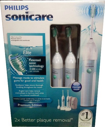 -. Title : Philips Sonicare Elite Premium Edition Toothbrush with Massage mode Includes 2 Handles, 3 Brush Heads and 2 Charger Packs, Pack of 2