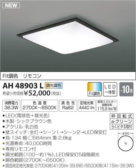●調色時定格光束値:2700K時(4105lm・39.6W)/6500K時(4115lm・36.9W)