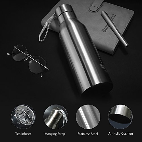 Your Daily Companion Environment Friendly The 720ml large capacity, leak proof and keep your drink refreshing. The wide mouth is easy to drink from on the go but still fits normal sized ice cubes. The 720ml large capacity will even hold a standard bottle of wine or coffee.