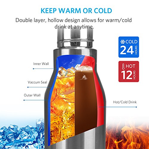 Keeps Hot for over 6 Hours, Keeps Cold for over 24 Hours Thermal insulation test: When in 22℃ condition,full the vacuum bottle with 95℃ water, remain 63℃ after 6 hours, remain 51℃ after 12 hours, remain 37℃ after 24 hours.
