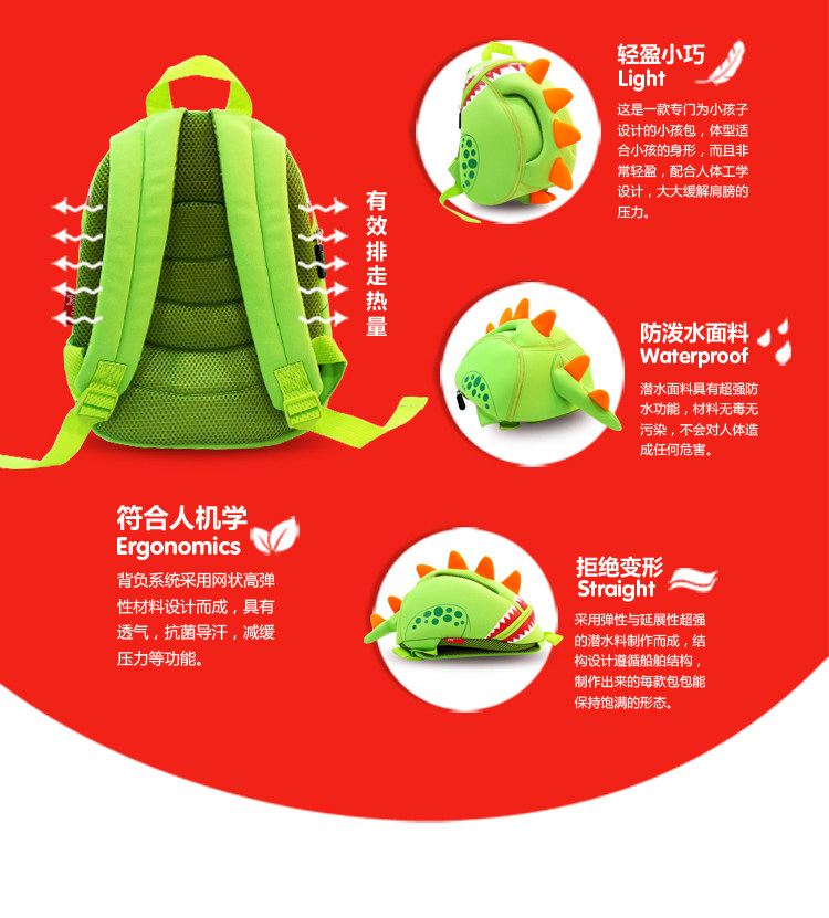 儿童书包1-3岁超轻幼儿园双肩包立体恐龙旅游背包生日礼物潮
