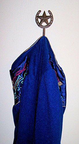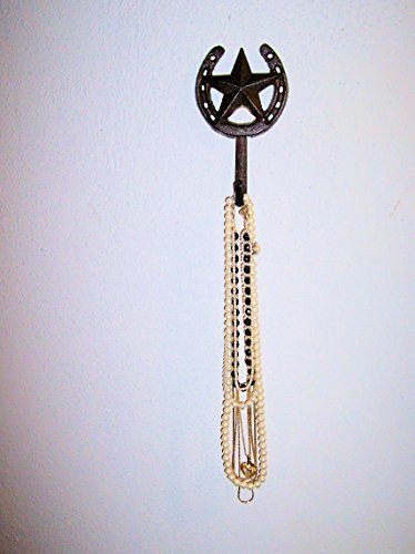 -. Feature : Horseshoe shaped hanger or hook - Antique style - Individually hand casted - A tradition handed down over the centuries - Wall hung indoor or outdoor use / Made of heavy cast iron - Rustic dark bronze finished - Accented with a star in the middle / Horseshoe hanger - Approximately size is: 6 in High X 3-1/2in Width x 1-1/2 in Deep - Hangs by two screws - Not included / Use for hanging coat and hat, keys, jewelry, candles, wall decoration and more - New, ever been used / Note: To see cast iron discounted products +++ Search on Amazon: ABC Products Cast Iron