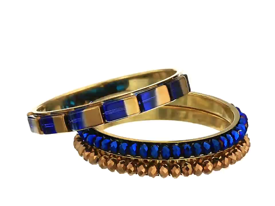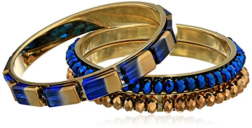 Chamak by priya kakkar Blue and Copper Plastic & Glass Beads Set of 3 Multi-Textured Bangle Bracelet