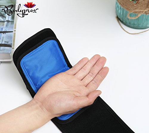 Includes a non-toxic gel pack bag (Size: 4.4" x 7.5") and a flexible compression wrap. The ice gel pack is reusable and it can be frozen, heated or microwaved.