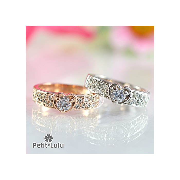 쁘띠《루루》 【Petit Lulu shop】반지 레이디스 하트 링 다이아몬드CZ RGP 2 색전개 18금RGP 쁘띠《루루오리지나루》반지3점 세트