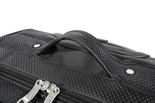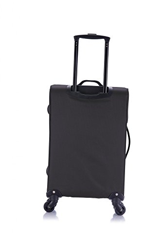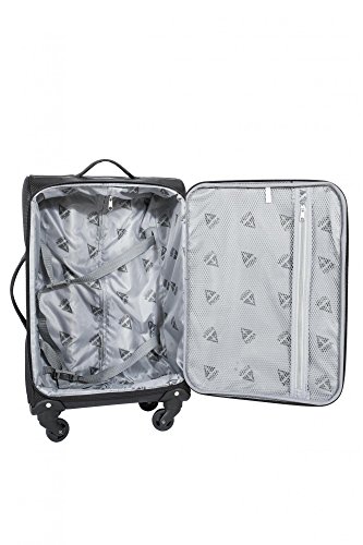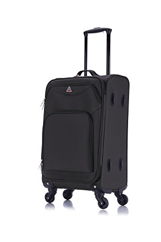 -. Feature : Diamond Polyester / Push button locking internal retractable light trolley system / Four spinner multi-directional silent 360 degree wheels for effortless mobility / Multiple exterior and interior pockets to keep you well organized / Tie-down straps to secure your belongings inside