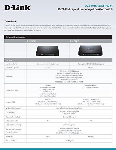 D-Link 16-Port Gigabit Switch (DGS-1016A)