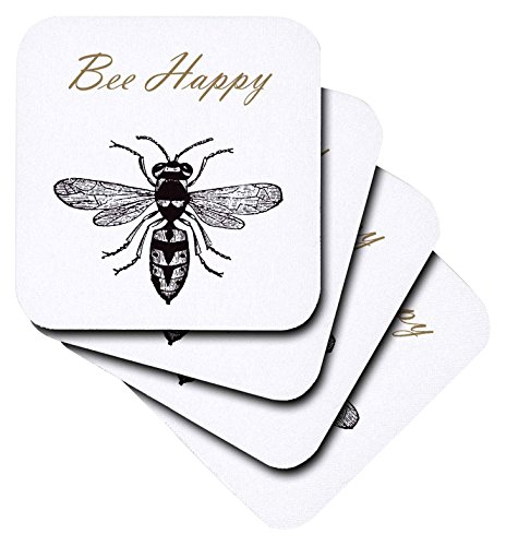 3dRose Bee Happy Inspirational Chic Art - Soft Coasters, Set of 4 (cst_164562_1)