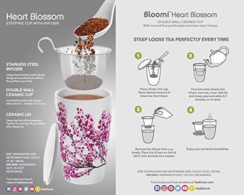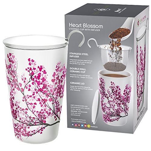 Teabloom BLOOMI Single Cup Loose Tea Brewing System makes the perfect cup of tea every single time. It has the innovative built-in features to let even the complete novice enjoy wonderful, full flavored tea. The ceramic cup has double walls that give you natural and very effective insulation. The cup keeps your drink hot or cold longer using this exclusive design. Beautiful Floral Painted Mug features a delightful, delicate design with a hint of Asian artistic tradition. The look goes well with any decor and color combinations. It will fit well with your other cups giving you a pleasing, attractive collection you will use over and over again. Includes Integrated Stainless Steel Infuser that lets you get the full flavor of your favorite teas. Less waste as you can use even the smallest tea leaves. Prevents "dusty" tea and gives you a premium experience every time with less effort and mess. This infuser is easy to wash and won't rust, corrode, or harbor bacteria. Ceramic Lid Doubles as Coaster is built just right so you can rest the infuser basket on the lid after steeping. Mug and lid can be used safely in the microwave, and all parts of this product are dishwasher-safe. Note the pressure adjustment plug at the bottom that equalizes the air pressure between the two layers. 100% Money Back Guarantee ensures this will be your best bet for a no-risk purchase. Many customers love this mug so much they return to buy several more. This makes a much appreciated gift for friends, family, and co-workers. Buy 2 or more Teabloom Products and receive 10% OFF with coupon code: TEABLOOM. We recommend bundling this mug with the Teabloom Flowering Teas (2-pack) to make this gift even more special and memorable. 0 |