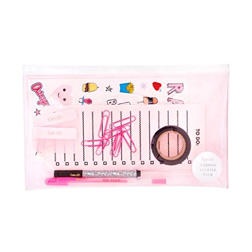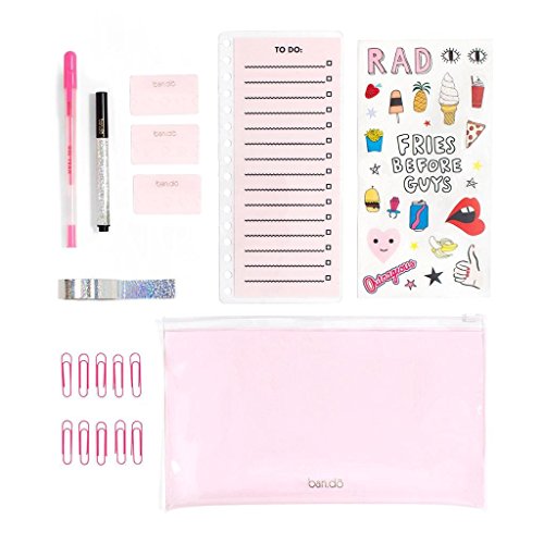 -. Feature : Translucent blush Pouch with sliding zipper closure / Comes with snap-in to do list and sticker sheet / Includes neon pink gel pen, mini wet erase marker, paper clips, disco foil tape and spiral slips