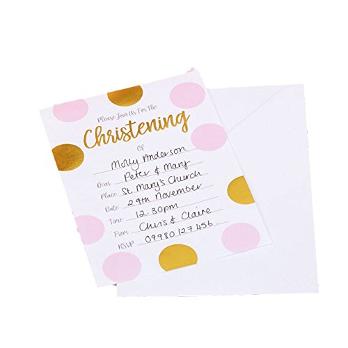 Neviti Pink and Gold Patternworks Polka Dots Christening nvitations (10 ct)