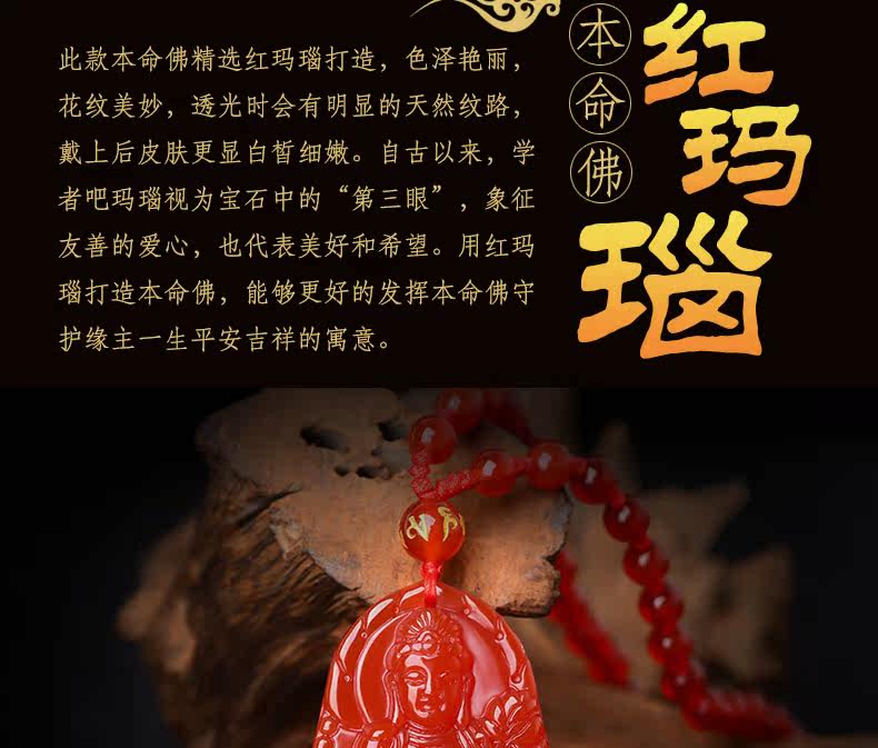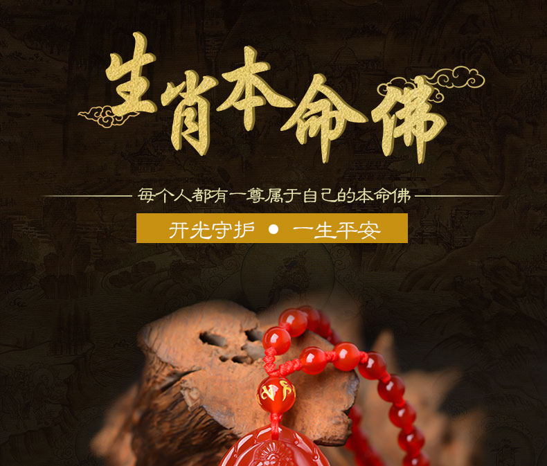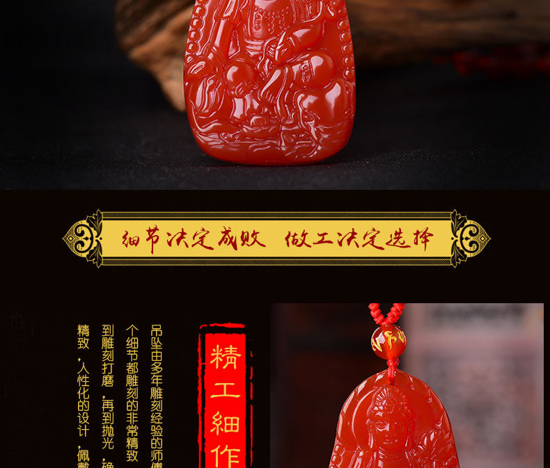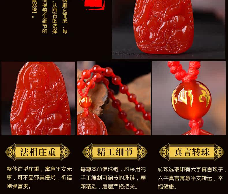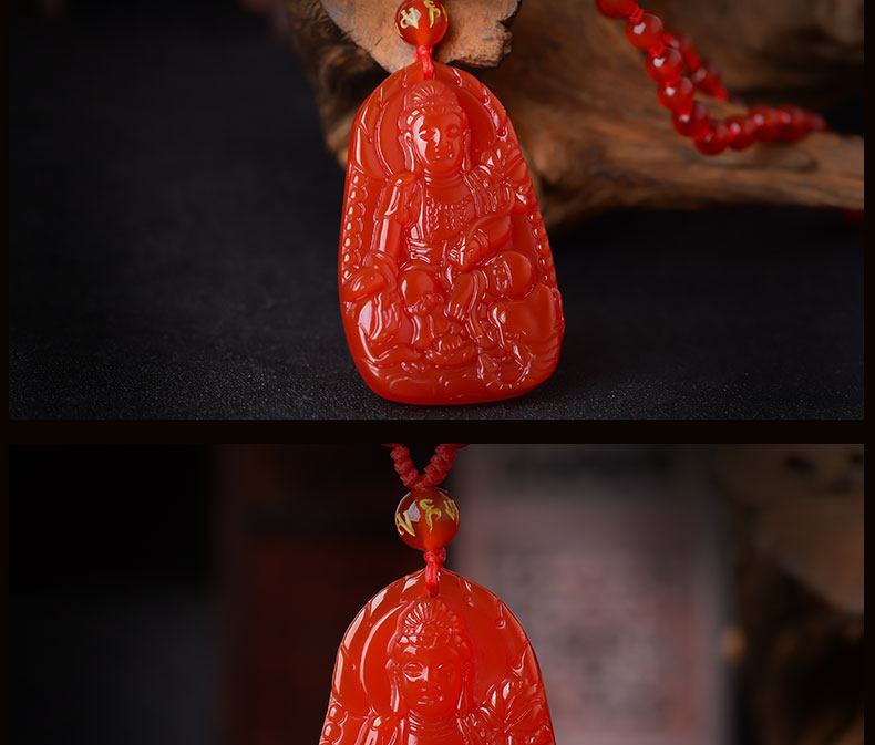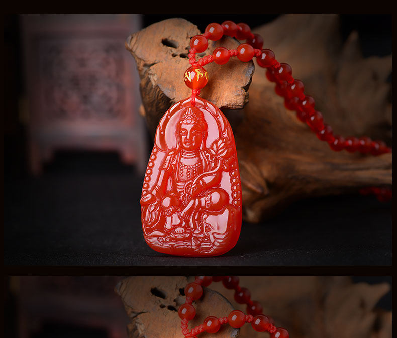 开光天然红玛瑙普贤菩萨项链十二生肖龙蛇本命佛男女水晶吊坠饰品