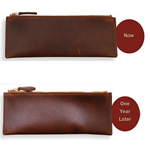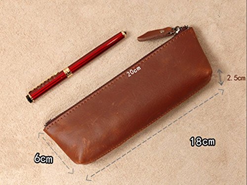 XIDUOBAO Handmade Retro Genuine Leather Pencil Pouch Vintage Soft Genuine Leather Pencil Pen Case Pouch Holder Bag. (02)