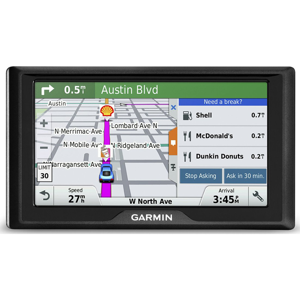 Garmin Drive 50 GPS navigator provides driver alerts to encourage safer driving and increase situational awareness. Warnings include alerts for sharp curves, speed changes, railroad crossings and animal crossings. Additionally, Garmin Drive 50 notifies you when driving the wrong way on a one-way street and sends warnings for nearby school zones. Receive alerts for nearby red light and speed cameras. For longer drives, a fatigue warning suggests break times and potential rest areas after hours of driving. The Up Ahead feature lets you easily see places up ahead and milestones along your route, without leaving the map view.