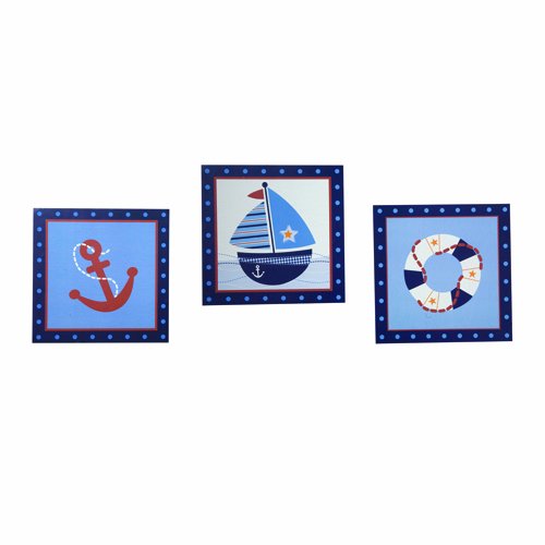 -. Feature : Three piece wall decor features three different sailing icons / Made of MDF wood / Coordinates with bedding set