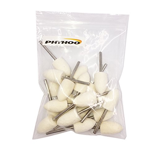 PHYHOO Wool Felt Point Mandrel Mounted Polishing Bits White Conical Fine Abrasive Rotary Tool Accessories Kit Fit Dremel - 1/8 Inch Shank