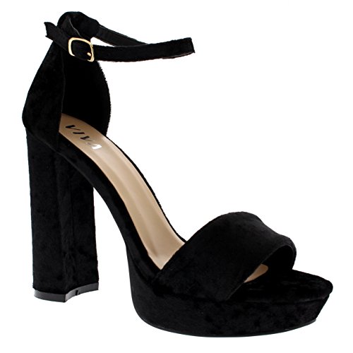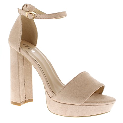 Viva Womens Barely There Open Toe Fashion Ankle Strap Block Heel High Heels