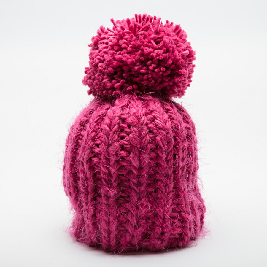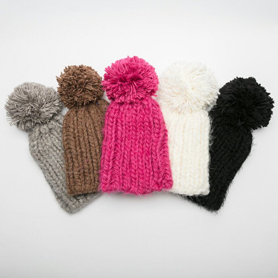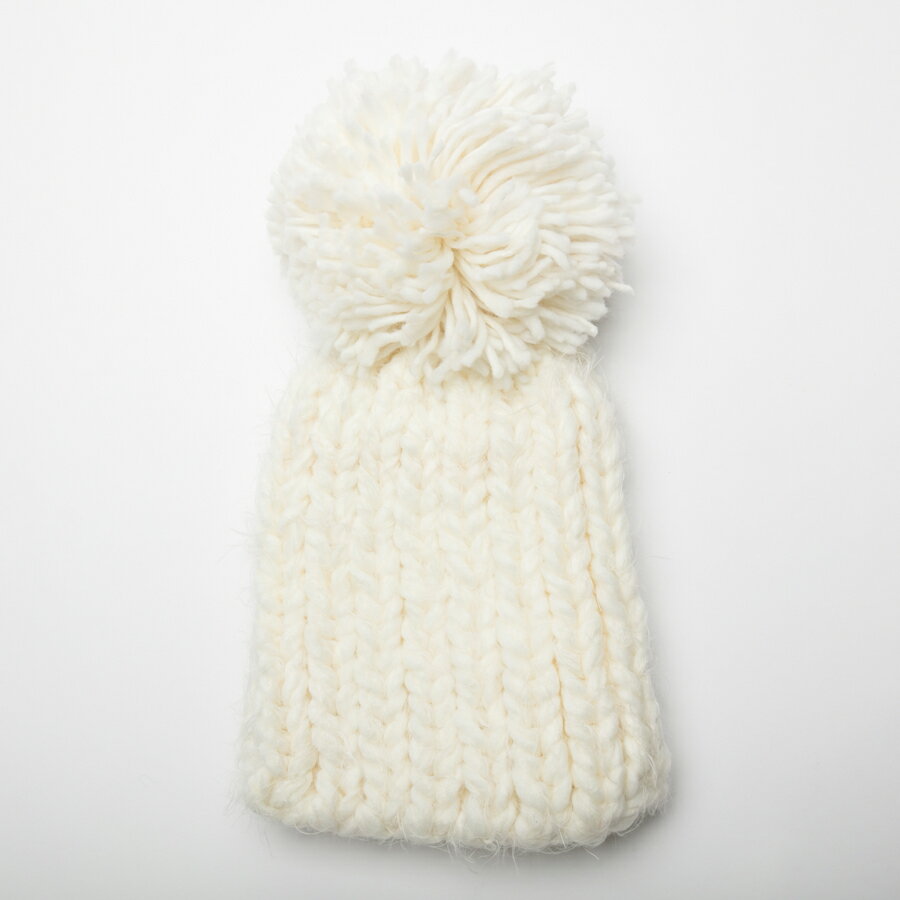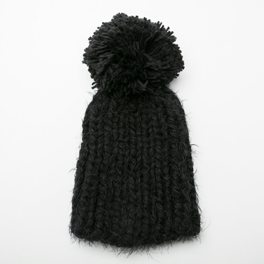 シャギー感のある糸を使用していてモコモコ感と大きい梵天が可愛いニット帽です。
