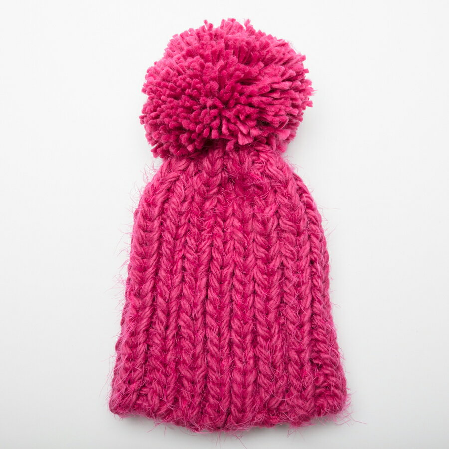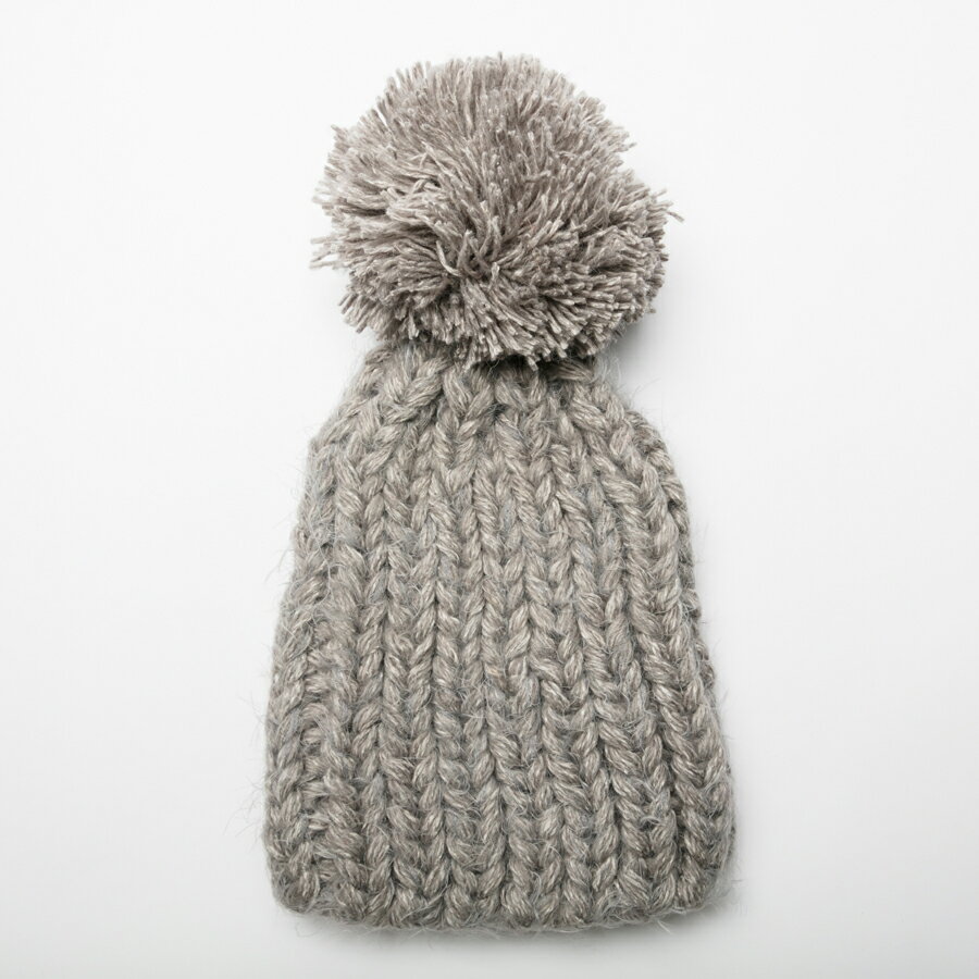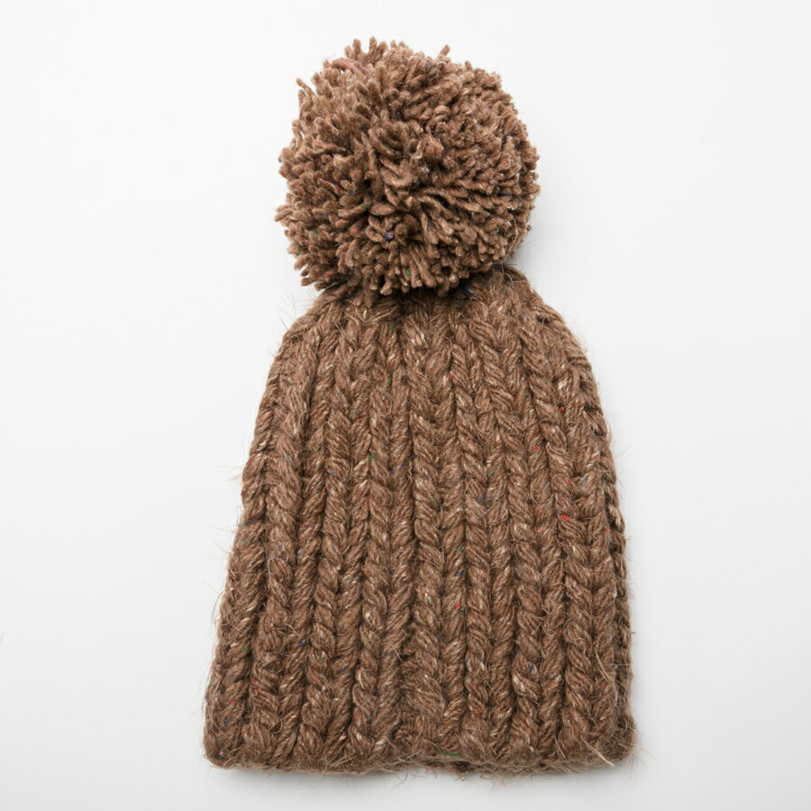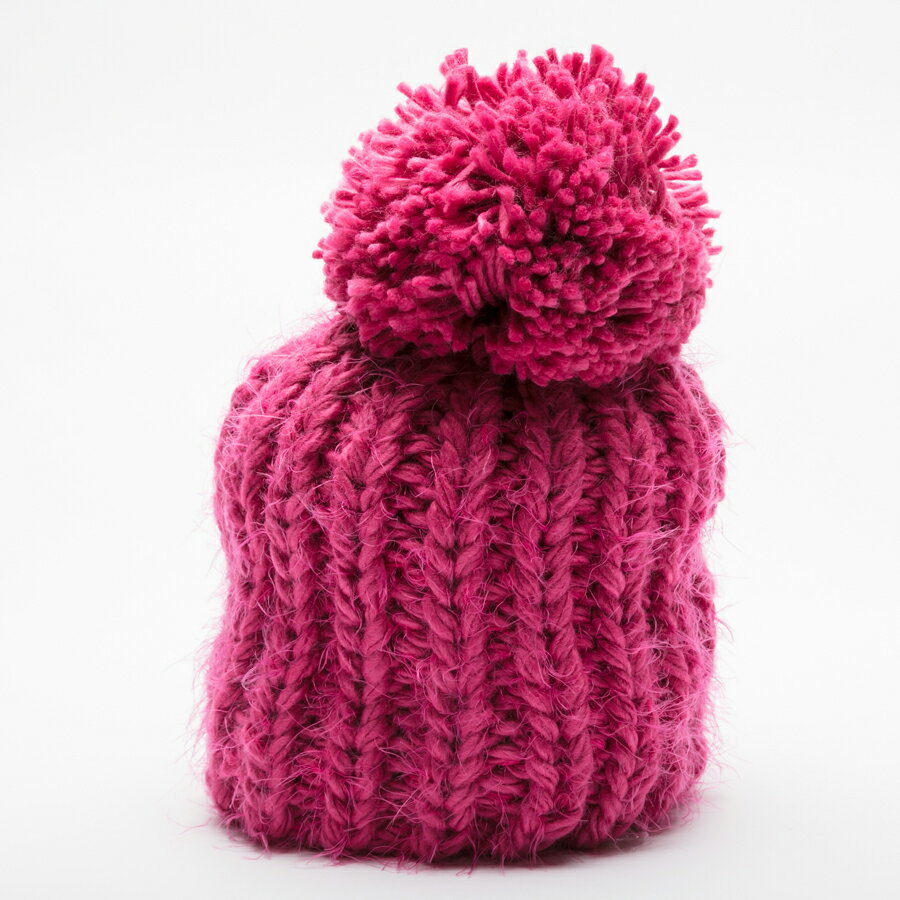 シャギー感のある糸を使用していてモコモコ感と大きい梵天が可愛いニット帽です。