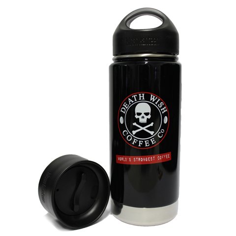 Death Wish Coffee 16-ounce Stainless Steel Travel Mug, Vacuum Insulated with Cafe Top and Loop Top, made by Klean Kanteen