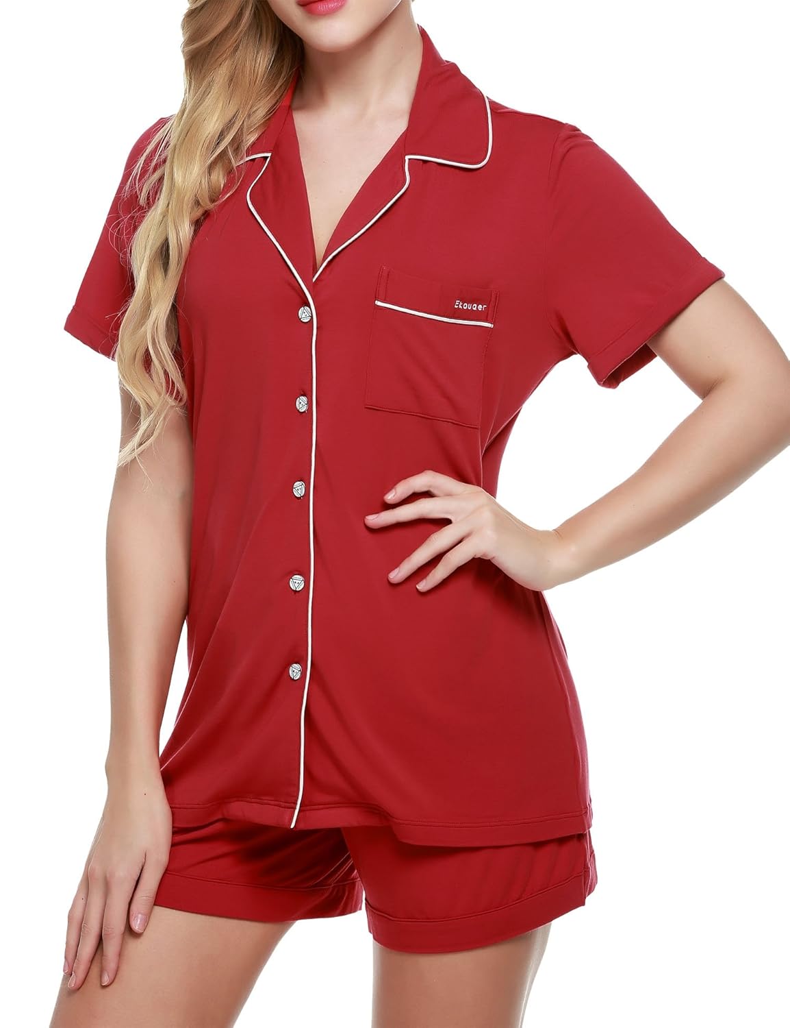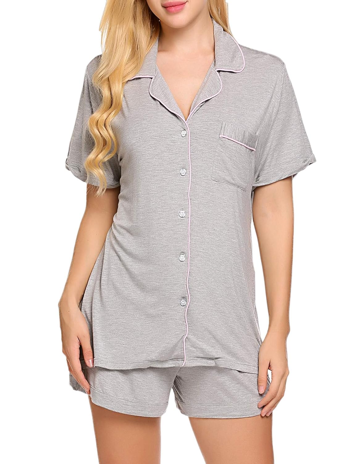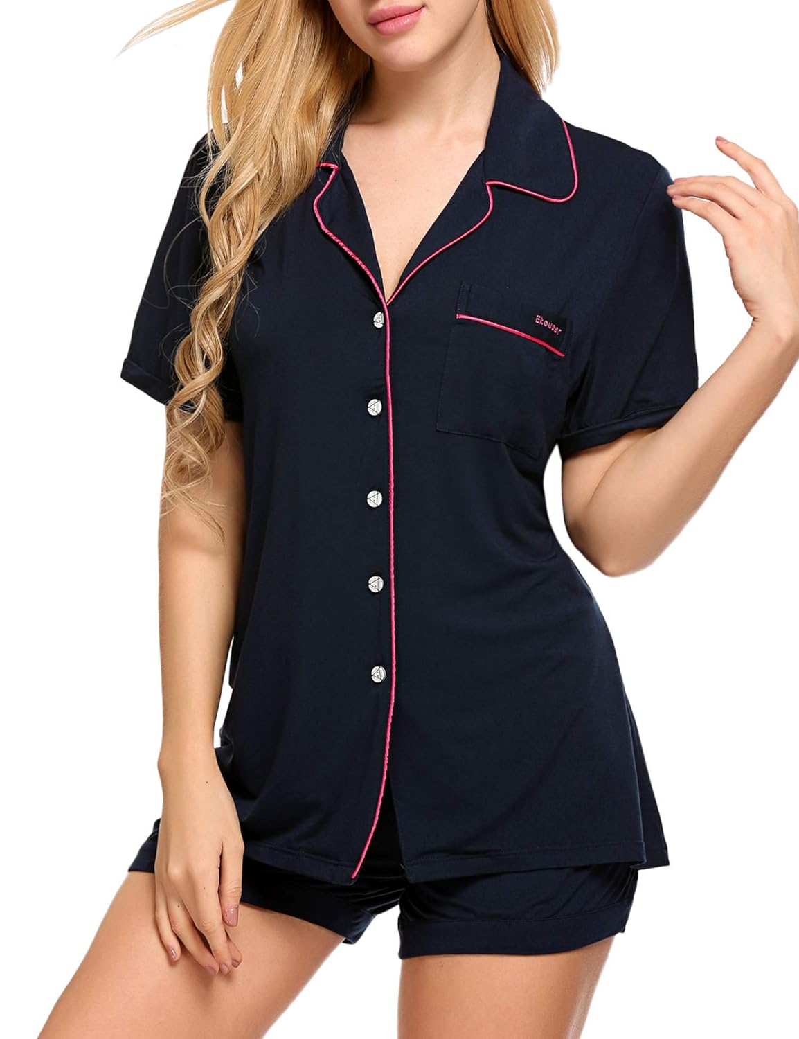 Super soft material:95SIZE Viscose/5SIZE Spandex.Easy fit and lightweight Our Color are standard US Color,please just choose your normal sleepwear Color.Two-piece pajama set featuring Short sleeve top and patterned short Top: button-down with notch collar ,chest pocket with Findci logo embroidery,and chiffon trim Bottom: Boxer short with elastic waist,chiffon drawstring.Machine washable. To prevent wrinkles, promptly remove from dryer Machine washable. To prevent wrinkles, promptly remove from dryer