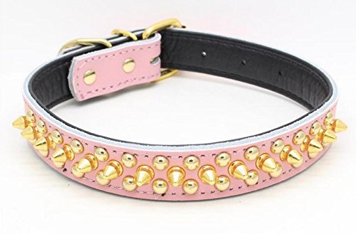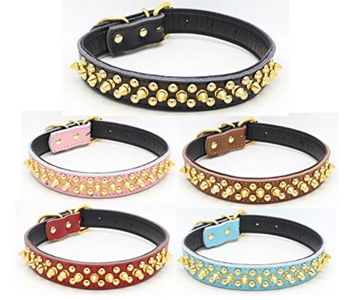 Benala Soft Genium Leather Gold Spiked Studded Pet Puppy Dog Collar For Small Medium Dogs Size S M L 5 Colors