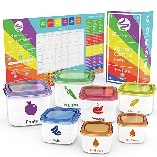 Smart Diet Control Portion Containers kit 7 Piece with eBook 21 day Meal Planner Complete Guide Leak Proof Microwave and Dishwasher Safe B01AMURZ5K