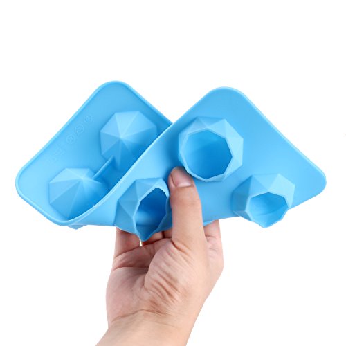 Diamond Silicone Ice Cube Trays Molds,Multifunctional Storage Containers for Ice, Candy, Cake and Chocolate,No Odor or Aftertaste, BPA Free,Set of 2 (blue&red)