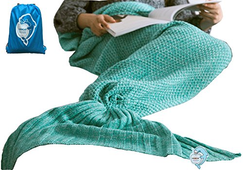 Feature : Laghcat package INCLUDE Three Items: One laghcat mermaid blanket, One laghcat casual daypack and One unique laghcat silver color necklace. / Adult Blanket Size: 71"x35.5". NOTE: THE BACK AND BOTTOM OF THE MERMAID BLANKET ARE OPEN, NOT CLOSED. / Super Multi-function for all seasons: Sleeping blanket keeps your kids warm in winter, spring and autumn; in summer, it also can keep warm in air conditioning house. / Make your little girls' mermaid dream come true. It's the best choice as Birthday, Christmas, New Year and all Holiday gifts. To everybody you love, it must be a surprise! We also need a beautiful princess at home, are you still waiting for? LAGHCAT IS ON THE WAY! / WASHING Instructions: Please kindly wash separately before first use. This crocheted mermaid blanket can be machine washed at a low temperature and tumble dried. We recommend that you do not wash the blanket with items containing zippers that might snag.