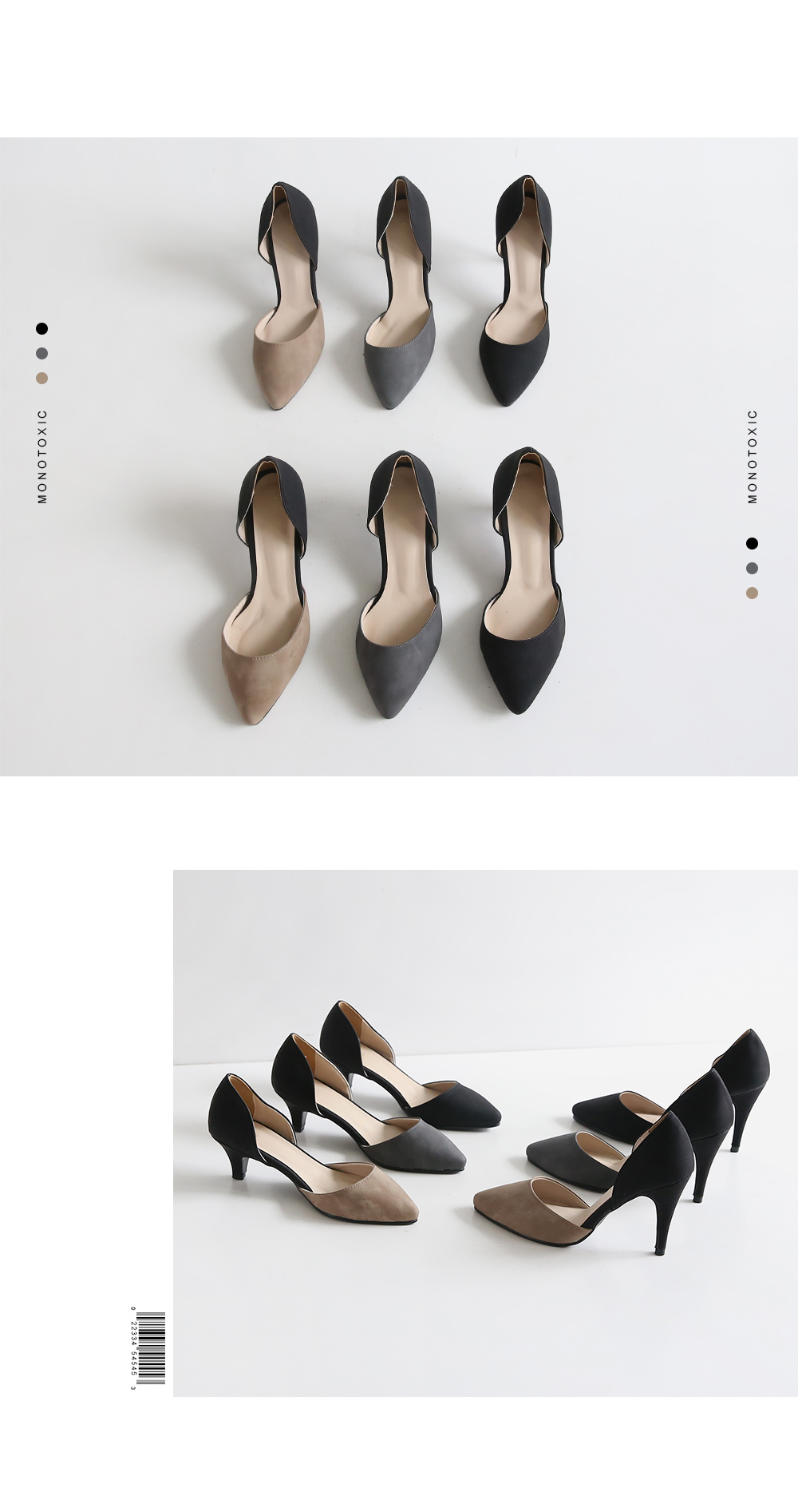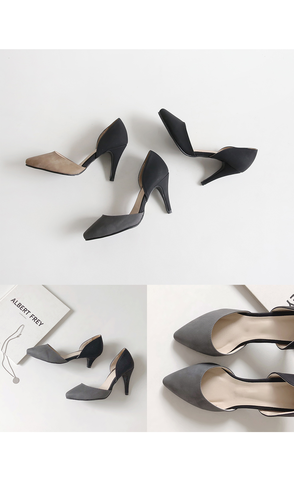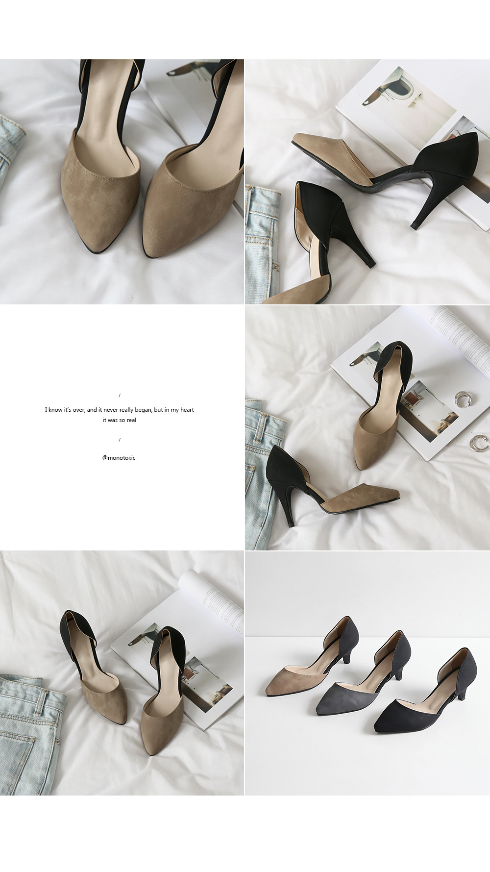 센슈얼한 디자인과 모노톤의 컬러와 어우러진 펌프스에요