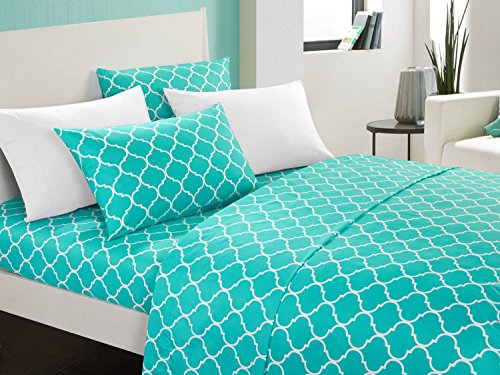 Chic Home Illusion 6 Piece Sheet Set Super Soft Contemporary Geometric Pattern Print Deep Pocket Design - Includes Flat & Fitted Sheets and Bonus Pillowcases, Queen Turquoise