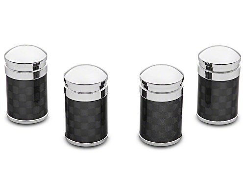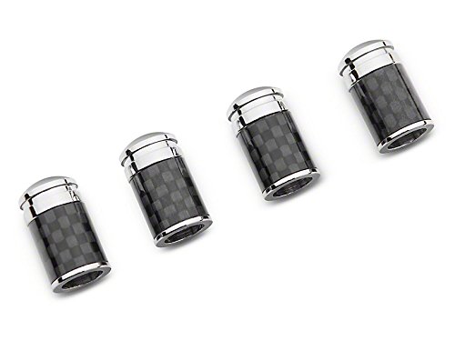 AeroDesigns Carbon Fiber Valve Stem Cap Cover -Hot Ride- Chrome Carbon Black Steel Pressure Valve Stems Caps Universal Fits ALL Cars Trucks SUV Bike & Bicycle ( Fit All Factory / OEM / Racing Wheels )